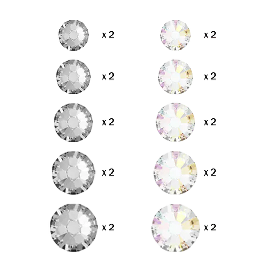 Pack formes strass dentaire Crystal / Crystal Aurore boréale Swarovski mix tailles